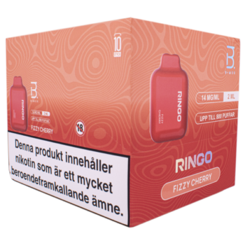 BMOR Ringo Fizzy Cherry är en snygg liten tvåfärgad engångsvape med 14 mg/ml nikotinsalt. Fizzy Cherry levererar en välbalanserad smak av körsbär. En knapplös e-cigarett som aktiveras automatiskt vid inhalering.BMOR Ringo Fizzy Cherry är en e-cigarett som ger upp till 800 puffar, testresultatet är baserat på 1.5 – 2 sekunder per puff. Antalet puffar varierar beroende på användarens intagsmängd, tid och intensitet.
